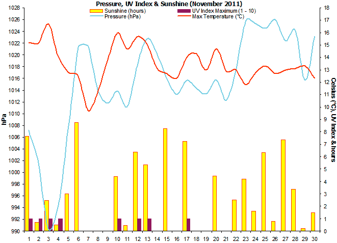 pressure and mean wind speed for November 2011. |